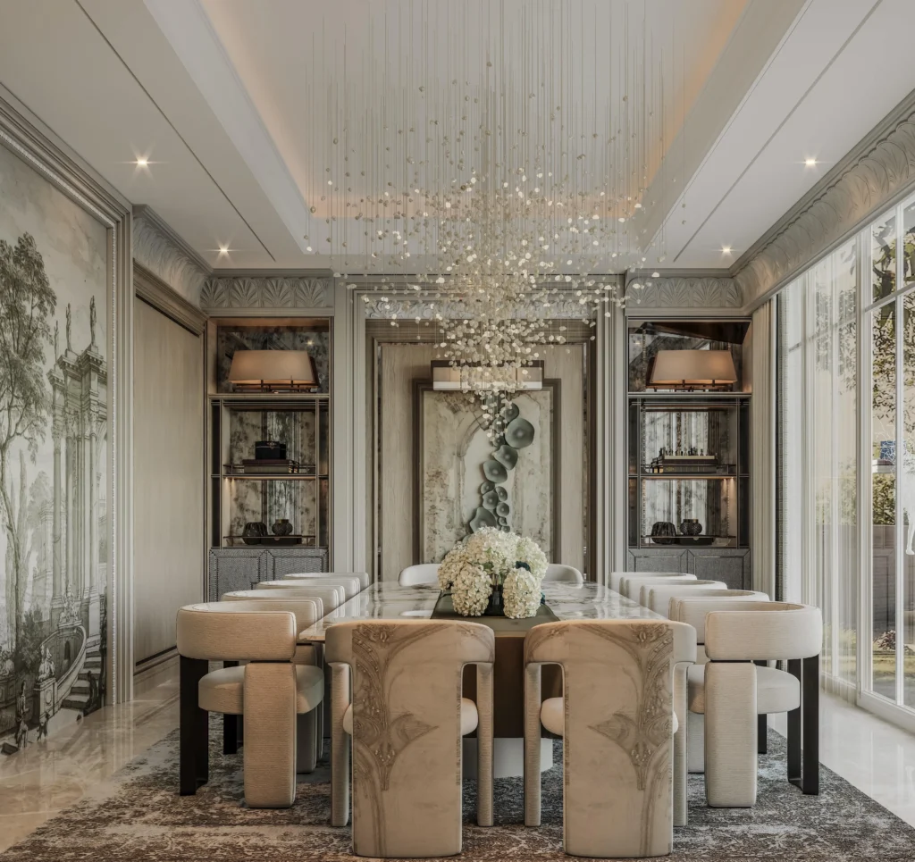 تصميم مستوحى من الطابع الكلاسيكي الفخم، يجمع بين الخشب الطبيعي والإضاءة الهادئة ليعكس هيبة واحترافية في بيئة العملتصميم مستوحى من...