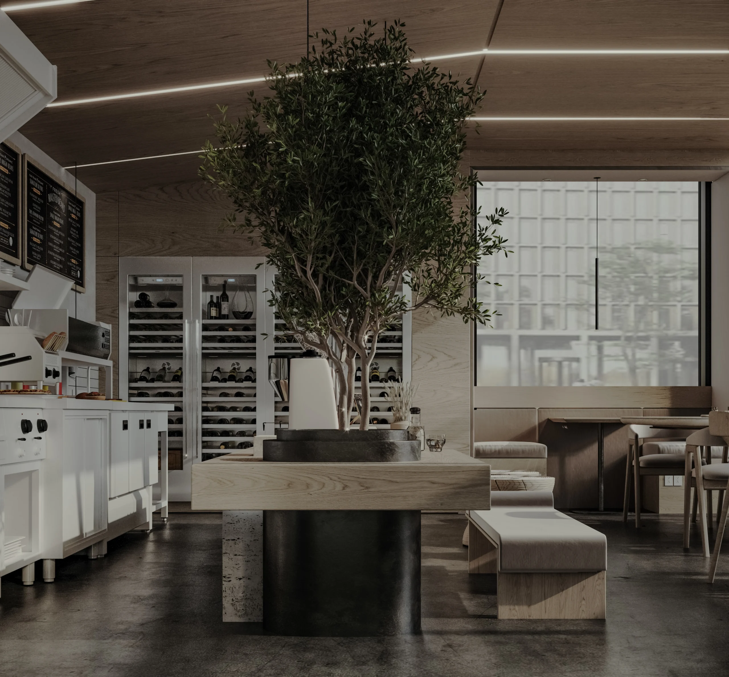 تصميم مستوحى من الطابع الكلاسيكي الفخم، يجمع بين الخشب الطبيعي والإضاءة الهادئة ليعكس هيبة واحترافية في بيئة العمل.